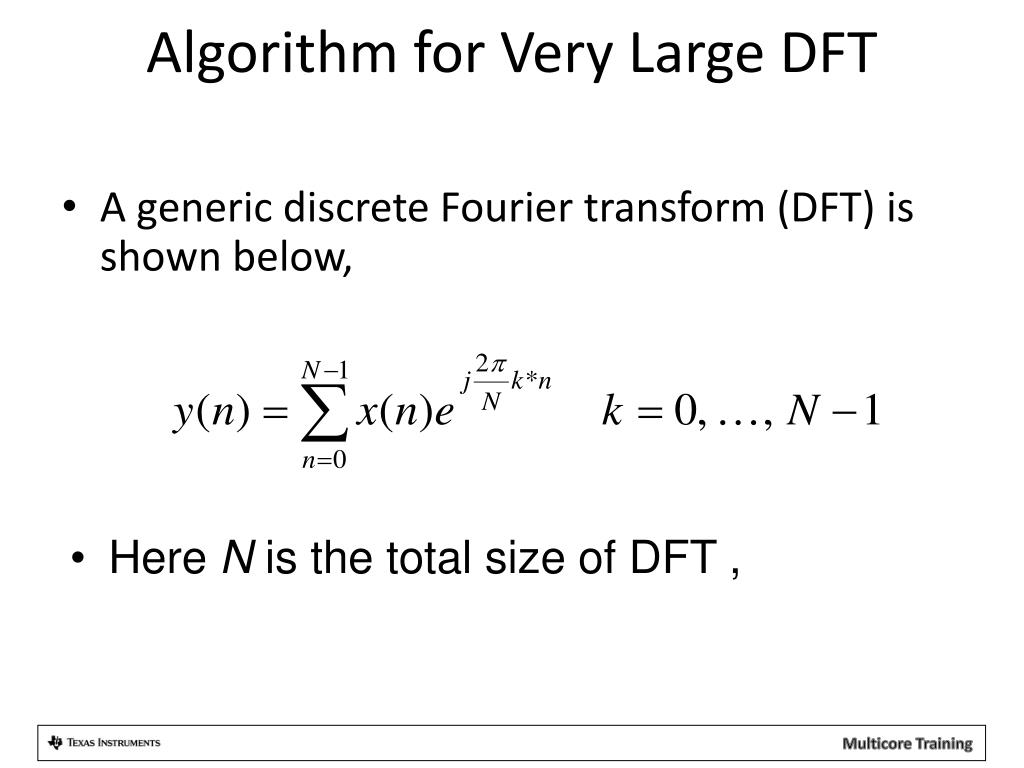 Algorithm for Very Large DFT • Here N is the total size of DFT , A generic discrete Fourier transform (DFT) is shown below,