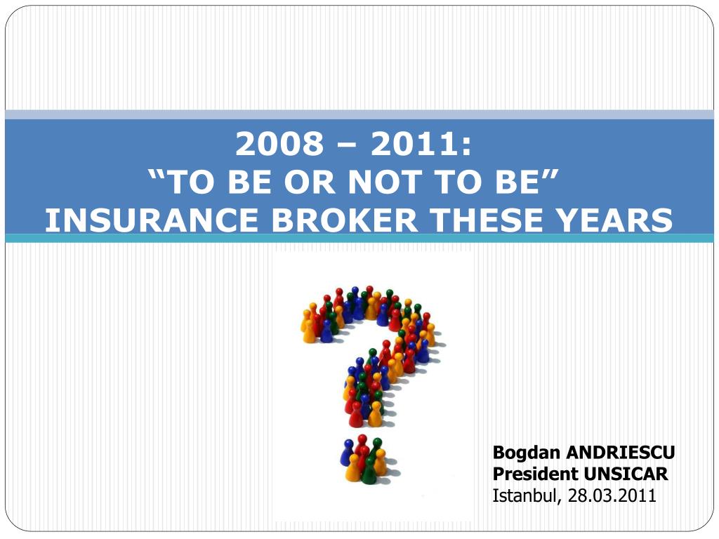 2008 – 2011: “TO BE OR NOT TO BE” INSURANCE BROKER THESE YEARS Bogdan ANDRIESCU President UNSICAR Istanbul, 28.03.2011