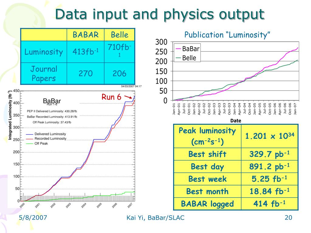 Data input and physics output Publication “Luminosity” Run 6 Kai Yi, BaBar/SLAC