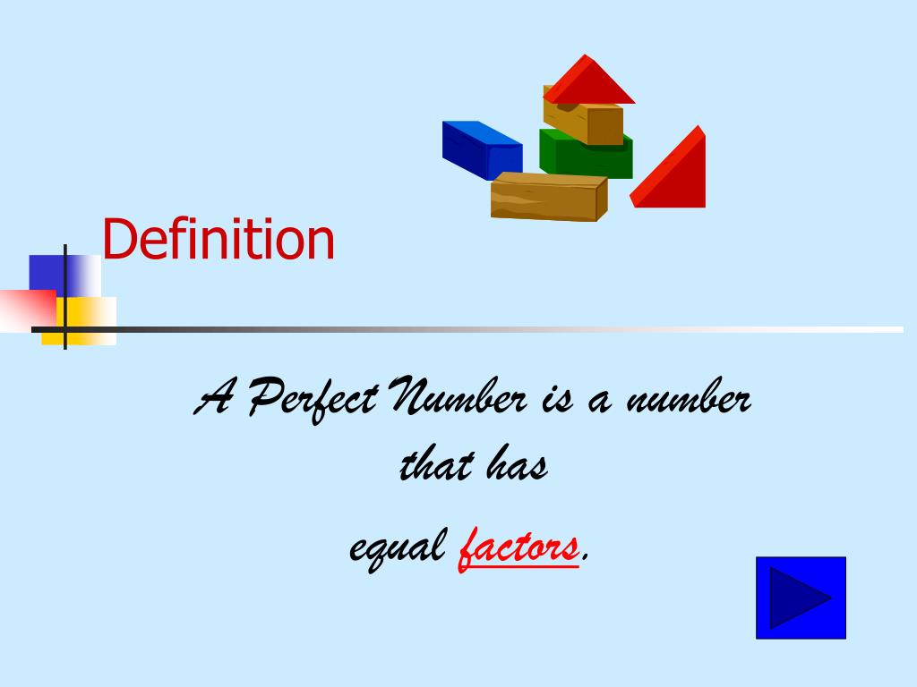 Perfect Numbers In this presentation you will learn what perfect numbers are and how to identify them. You will look at whole numbers, fractions, and negative numbers.