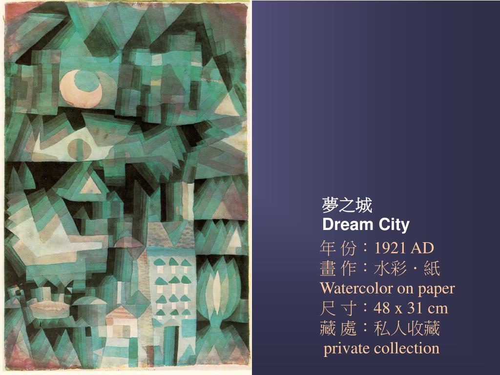 夢之城Dream City 年 份:1921 AD畫 作:水彩.紙 Watercolor on paper 尺 寸:48 x 31 cm藏 處:私人收藏 private collection