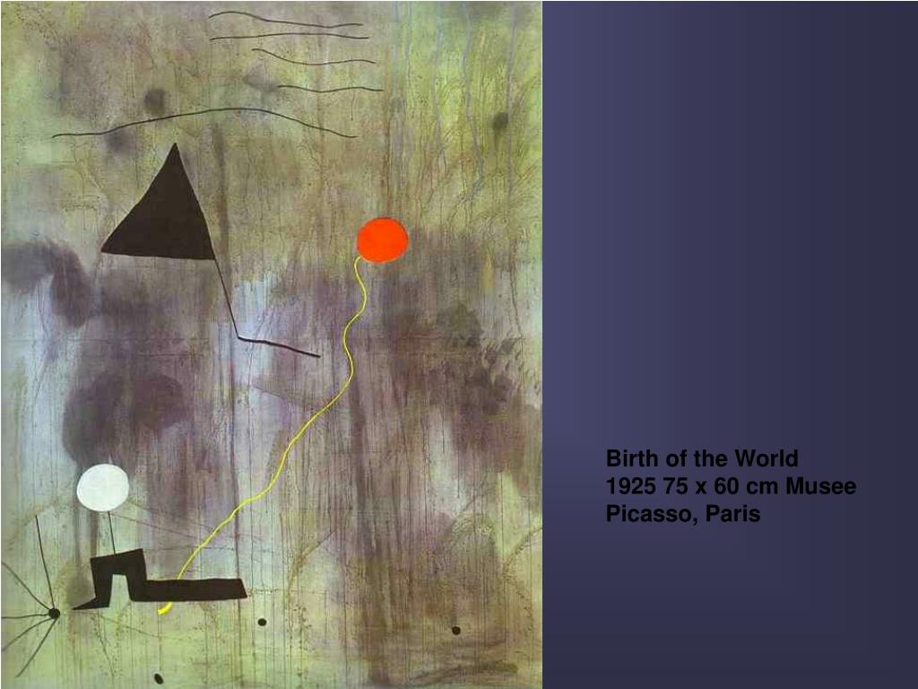 1919年米羅來到了大藝術家群集的巴黎。 在他對野獸主義及立體主義的探求大致結束之後,又投入了當時最先進的藝術風潮--也就是試圖反抗既有的傳統價值和理性至上主義的達達主義。但面對徹底的反抗運動的達達,米羅並不視其為應走的方向。