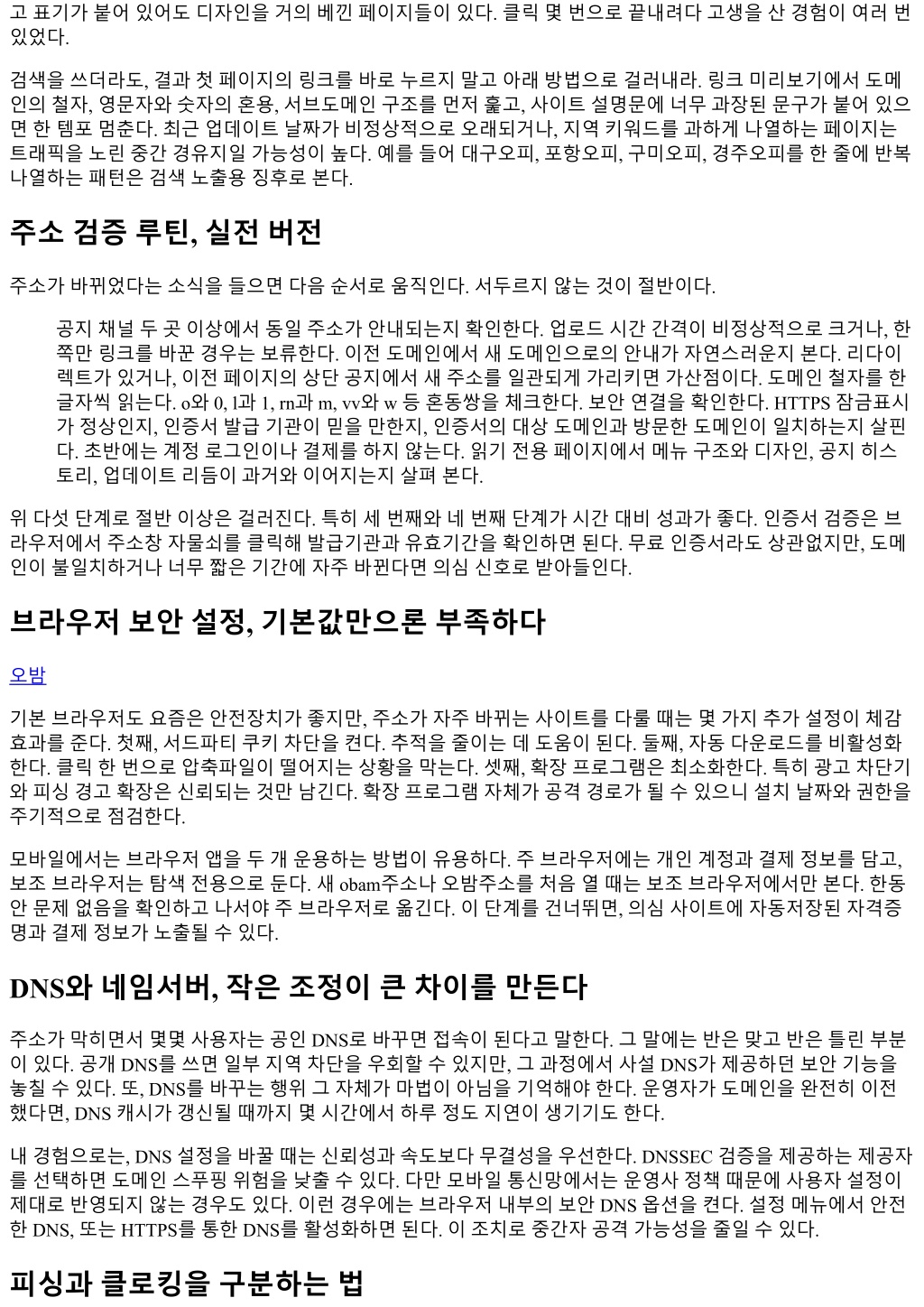 고표기가붙어있어도디자인을거의베낀페이지들이있다. 클릭몇번으로끝내려다고생을산경험이여러번 있었다. 검색을쓰더라도, 결과첫페이지의링크를바로누르지말고아래방법으로걸러내라. 링크미리보기에서도메 인의철자, 영문자와숫자의혼용, 서브도메인구조를먼저훑고, 사이트설명문에너무과장된문구가붙어있으 면한템포멈춘다. 최근업데이트날짜가비정상적으로오래되거나, 지역키워드를과하게나열하는페이지는 트래픽을노린중간경유지일가능성이높다. 예를들어대구오피, 포항오피, 구미오피, 경주오피를한줄에반복 나열하는패턴은검색노출용징후로본다. 주소검증루틴, 실전버전 주소가바뀌었다는소식을들으면다음순서로움직인다. 서두르지않는것이절반이다. 공지채널두곳이상에서동일주소가안내되는지확인한다. 업로드시간간격이비정상적으로크거나, 한 쪽만링크를바꾼경우는보류한다. 이전도메인에서새도메인으로의안내가자연스러운지본다. 리다이 렉트가있거나, 이전페이지의상단공지에서새주소를일관되게가리키면가산점이다. 도메인철자를한 글자씩읽는다. o와 0, l과 1, rn과 m, vv와 w 등혼동쌍을체크한다. 보안연결을확인한다. HTTPS 잠금표시 가정상인지, 인증서발급기관이믿을만한지, 인증서의대상도메인과방문한도메인이일치하는지살핀 다. 초반에는계정로그인이나결제를하지않는다. 읽기전용페이지에서메뉴구조와디자인, 공지히스 토리, 업데이트리듬이과거와이어지는지살펴본다. 위다섯단계로절반이상은걸러진다. 특히세번째와네번째단계가시간대비성과가좋다. 인증서검증은브 라우저에서주소창자물쇠를클릭해발급기관과유효기간을확인하면된다. 무료인증서라도상관없지만, 도메 인이불일치하거나너무짧은기간에자주바뀐다면의심신호로받아들인다. 브라우저보안설정, 기본값만으론부족하다 오밤 기본브라우저도요즘은안전장치가좋지만, 주소가자주바뀌는사이트를다룰때는몇가지추가설정이체감 효과를준다. 첫째, 서드파티쿠키차단을켠다. 추적을줄이는데도움이된다. 둘째, 자동다운로드를비활성화 한다. 클릭한번으로압축파일이떨어지는상황을막는다. 셋째, 확장프로그램은최소화한다. 특히광고차단기 와피싱경고확장은신뢰되는것만남긴다. 확장프로그램자체가공격경로가될수있으니설치날짜와권한을 주기적으로점검한다. 모바일에서는브라우저앱을두개운용하는방법이유용하다. 주브라우저에는개인계정과결제정보를담고, 보조브라우저는탐색전용으로둔다. 새 obam주소나오밤주소를처음열때는보조브라우저에서만본다. 한동 안문제없음을확인하고나서야주브라우저로옮긴다. 이단계를건너뛰면, 의심사이트에자동저장된자격증 명과결제정보가노출될수있다. DNS와네임서버, 작은조정이큰차이를만든다 주소가막히면서몇몇사용자는공인 DNS로바꾸면접속이된다고말한다. 그말에는반은맞고반은틀린부분 이있다. 공개 DNS를쓰면일부지역차단을우회할수있지만, 그과정에서사설 DNS가제공하던보안기능을 놓칠수있다. 또, DNS를바꾸는행위그자체가마법이아님을기억해야한다. 운영자가도메인을완전히이전 했다면, DNS 캐시가갱신될때까지몇시간에서하루정도지연이생기기도한다. 내경험으로는, DNS 설정을바꿀때는신뢰성과속도보다무결성을우선한다. DNSSEC 검증을제공하는제공자 를선택하면도메인스푸핑위험을낮출수있다. 다만모바일통신망에서는운영사정책때문에사용자설정이 제대로반영되지않는경우도있다. 이런경우에는브라우저내부의보안 DNS 옵션을켠다. 설정메뉴에서안전 한 DNS, 또는 HTTPS를통한 DNS를활성화하면된다. 이조치로중간자공격가능성을줄일수있다. 피싱과클로킹을구분하는법