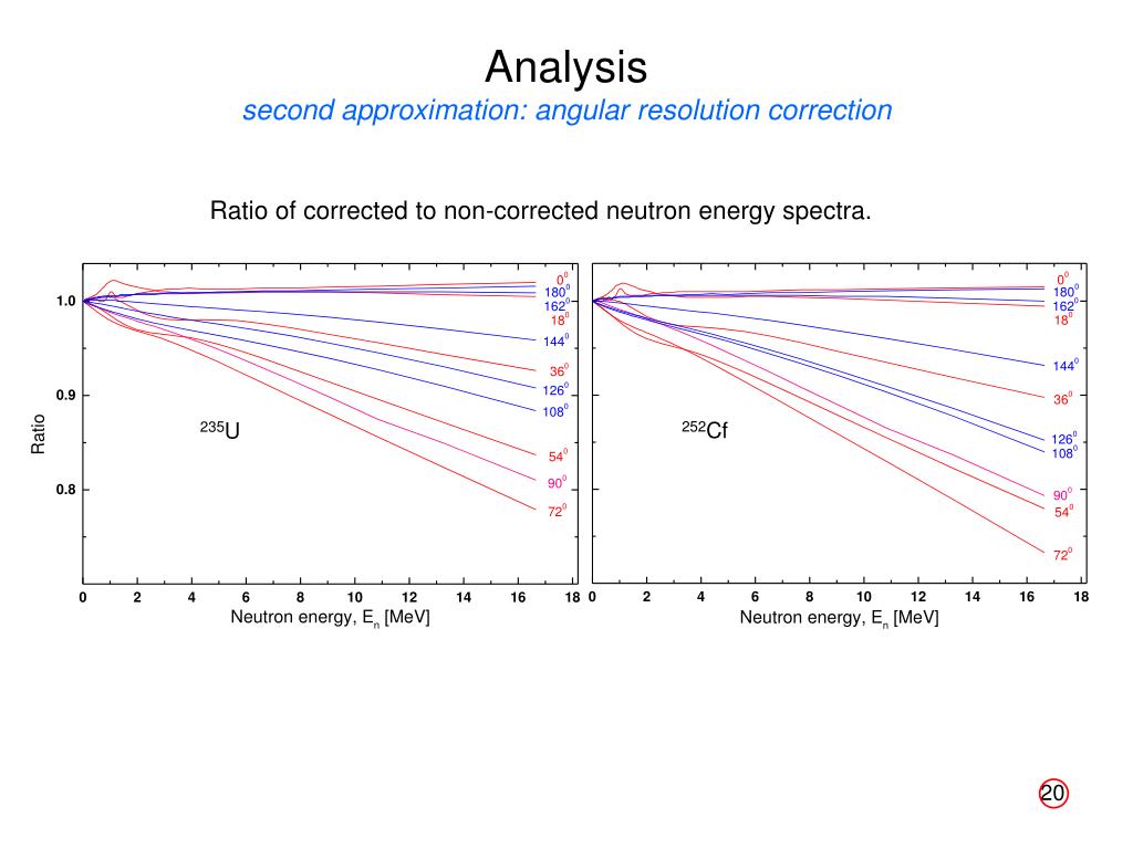 Analysissecond approximation: angular resolution correction Ratio of corrected to non-corrected neutron energy spectra. 252Cf 235U