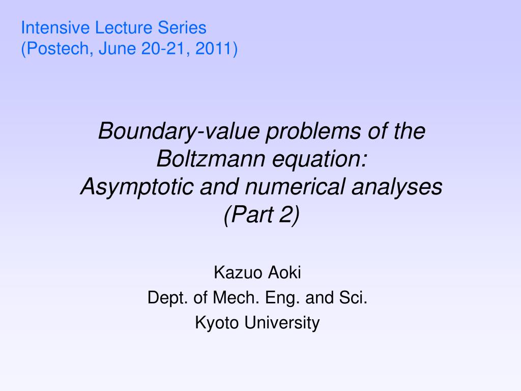 Intensive Lecture Series (Postech, June 20-21, 2011) Boundary-value problems of the Boltzmann equation:Asymptotic and numerical analyses(Part 2) Kazuo Aoki Dept. of Mech. Eng. and Sci. Kyoto University