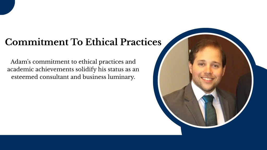 6. Commitment To Ethical Practices Adam's commitment to ethical practices and academic achievements solidify his status as an esteemed consultant and business luminary.