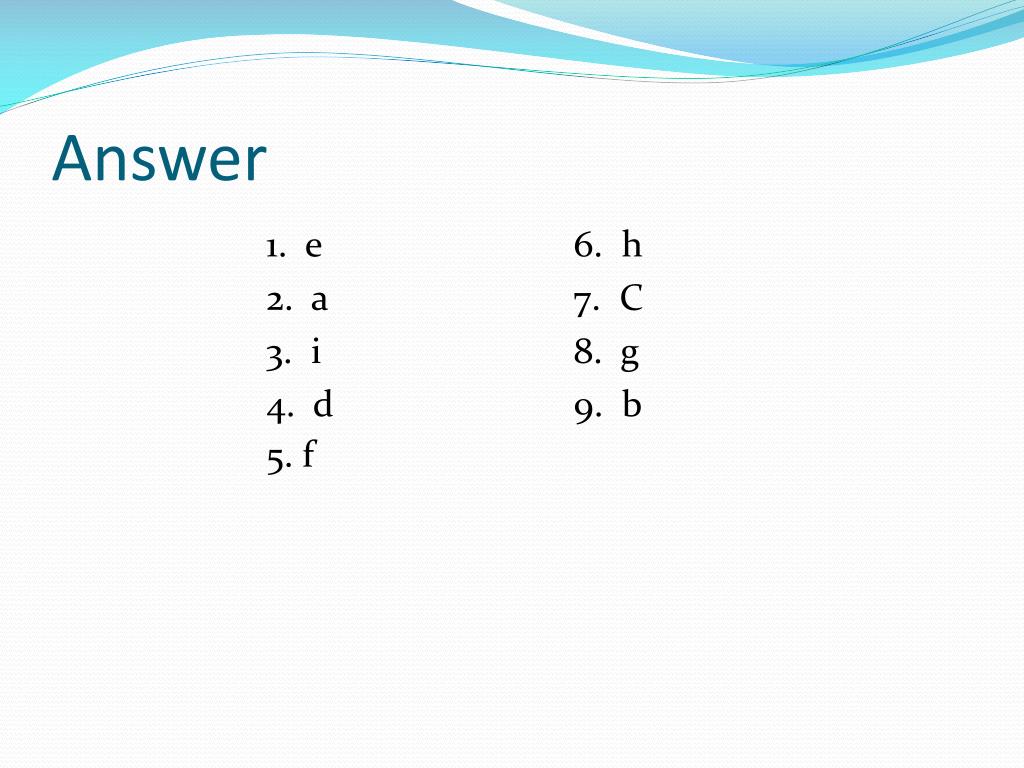 Answer 1. e 6. h 2. a 7. C 3. i 8. g 4. d 9. b 5. f