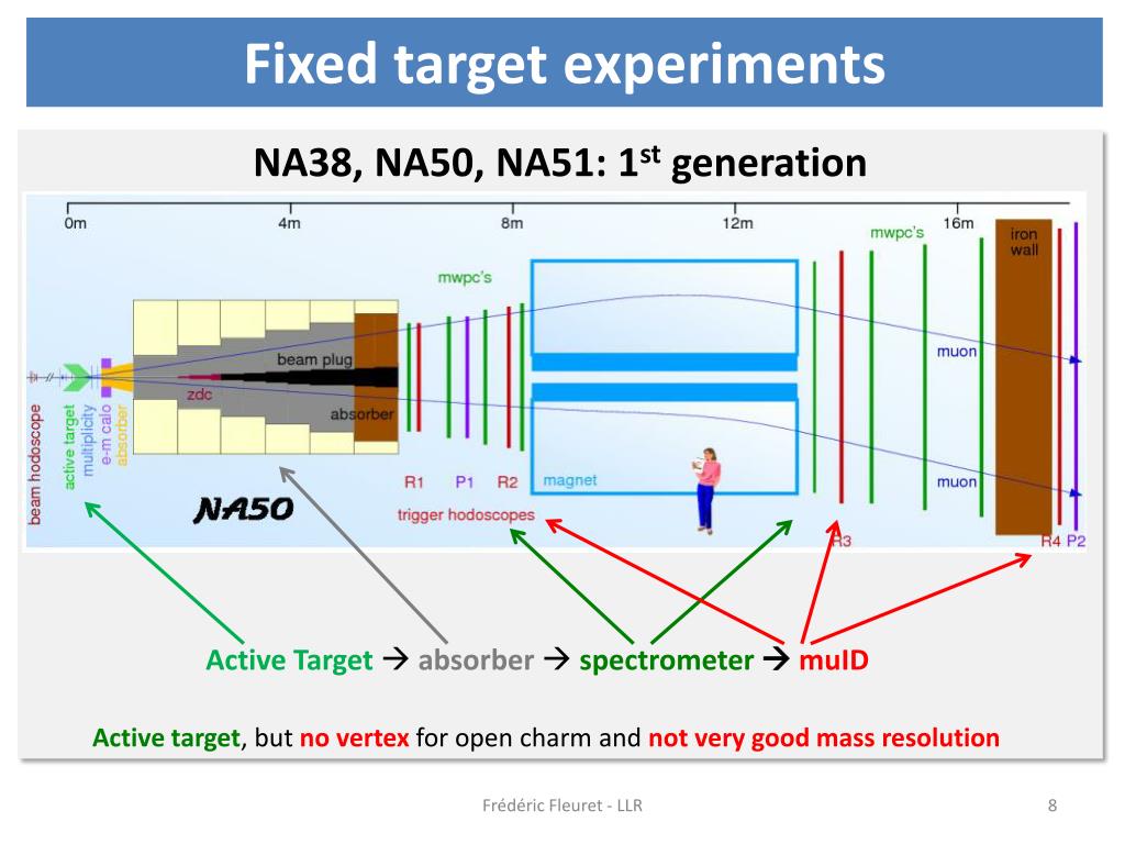 Fixedtargetexperiments NA38, NA50, NA51: 1stgeneration Active Target absorber spectrometermuID Active target, but no vertex for open charm and not very good mass resolution Frédéric Fleuret - LLR