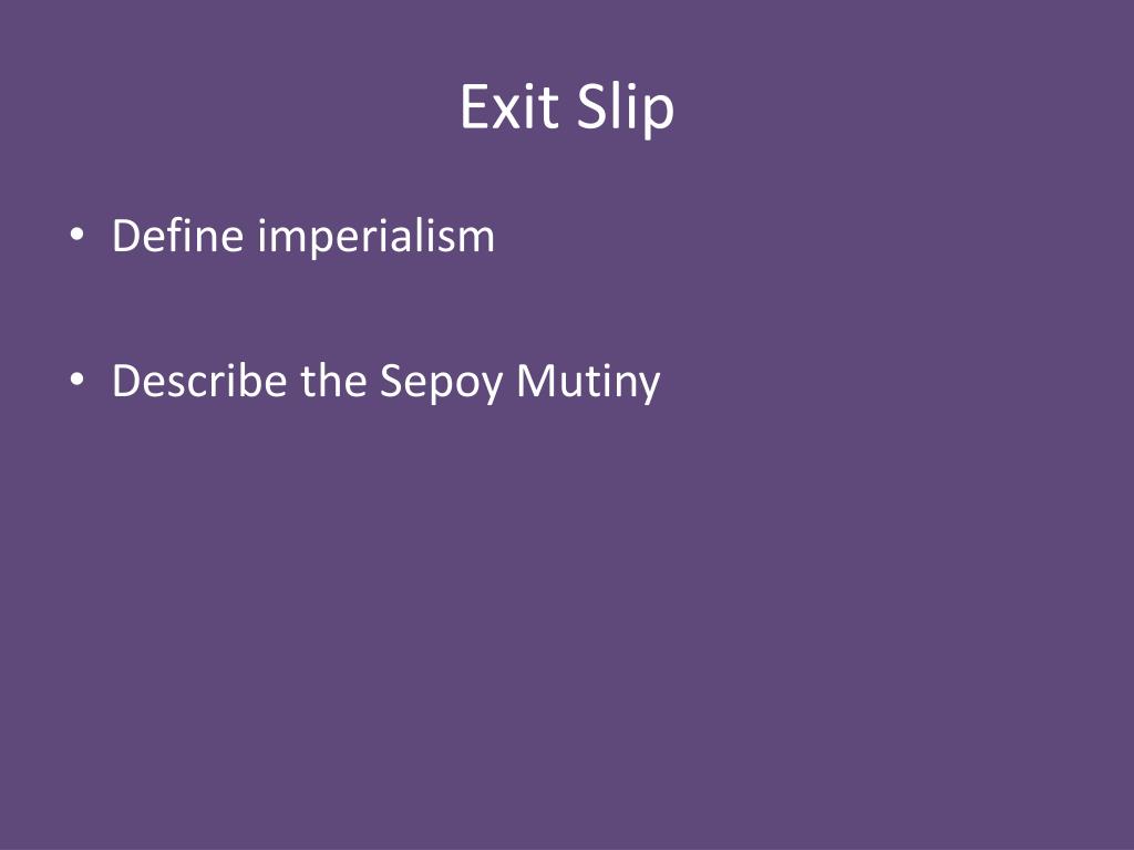 Exit Slip • Define imperialism • Describe the Sepoy Mutiny