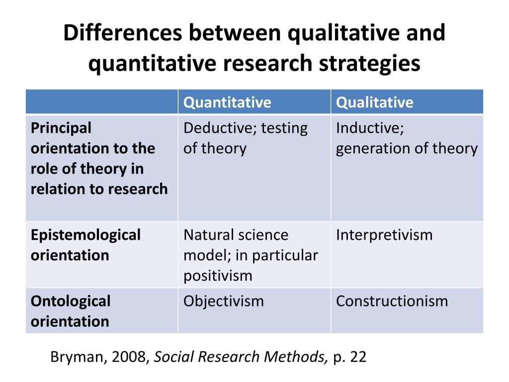 Differences between qualitative and quantitative research strategies Bryman, 2008, Social Research Methods, p. 22