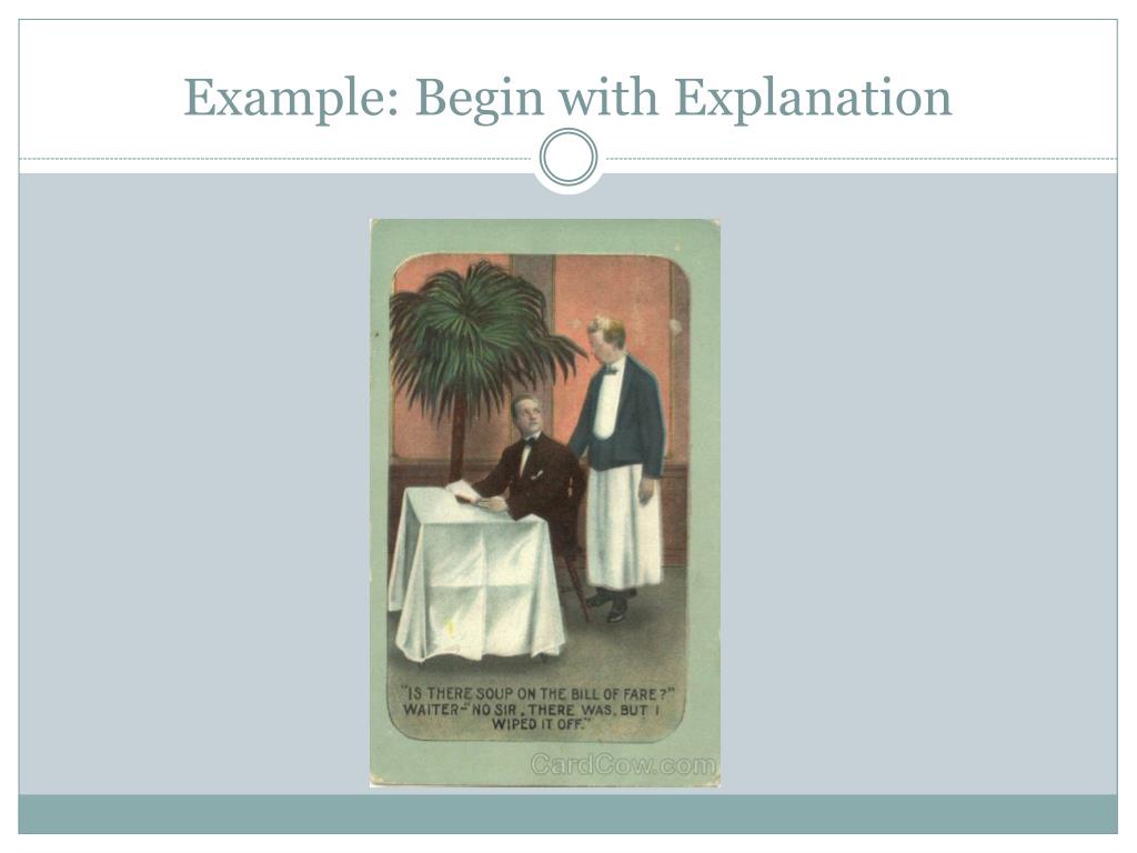 Examples Beginning With Belief Begin with belief and work through an explanation: “A God of Service to Mankind” (Fauci, 65). “Unleashing the Power of Creativity” (Gates, 71). “The People Who Love you When No One Else Will”(Gilmer,71)