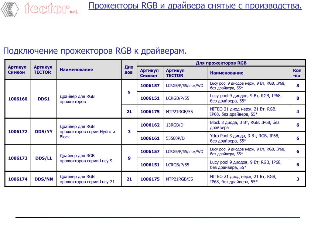 Светодиодные прожекторы для бассейнов. Содержание:. Особенности светодиодного освещения. Модельный ряд прожекторов для бассейнов. Подключение RGB прожекторов. Драйвера для RGB прожекторов. Внешние подключаемые устройства DMX . Способы управления системой освещения .