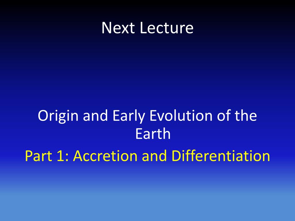 Next Lecture Origin and Early Evolution of the Earth Part 1: Accretion and Differentiation