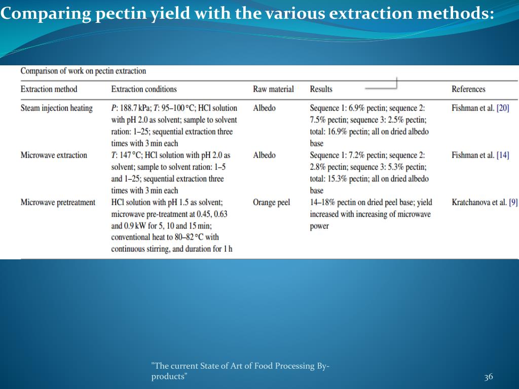 Comparing pectin yield with the various extraction methods: "The current State of Art of Food Processing By-products"