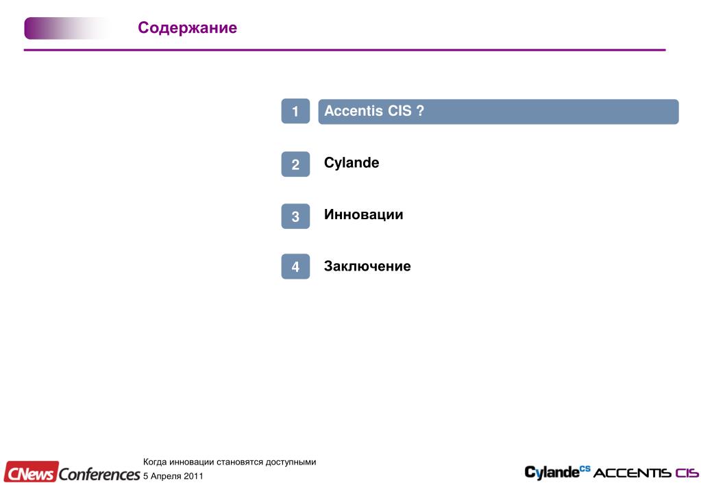 Содержание • Accentis CIS? • Cylande • Инновации • Заключение 1 2 3 4