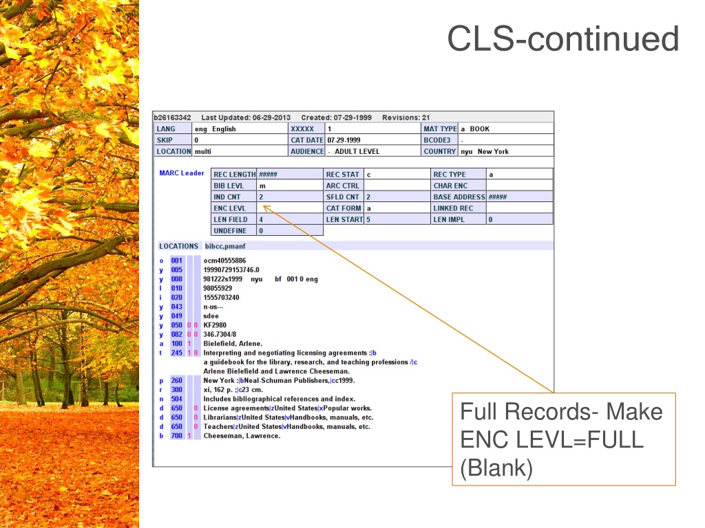 CLS-continued Full Records- Make ENC LEVL=FULL (Blank)