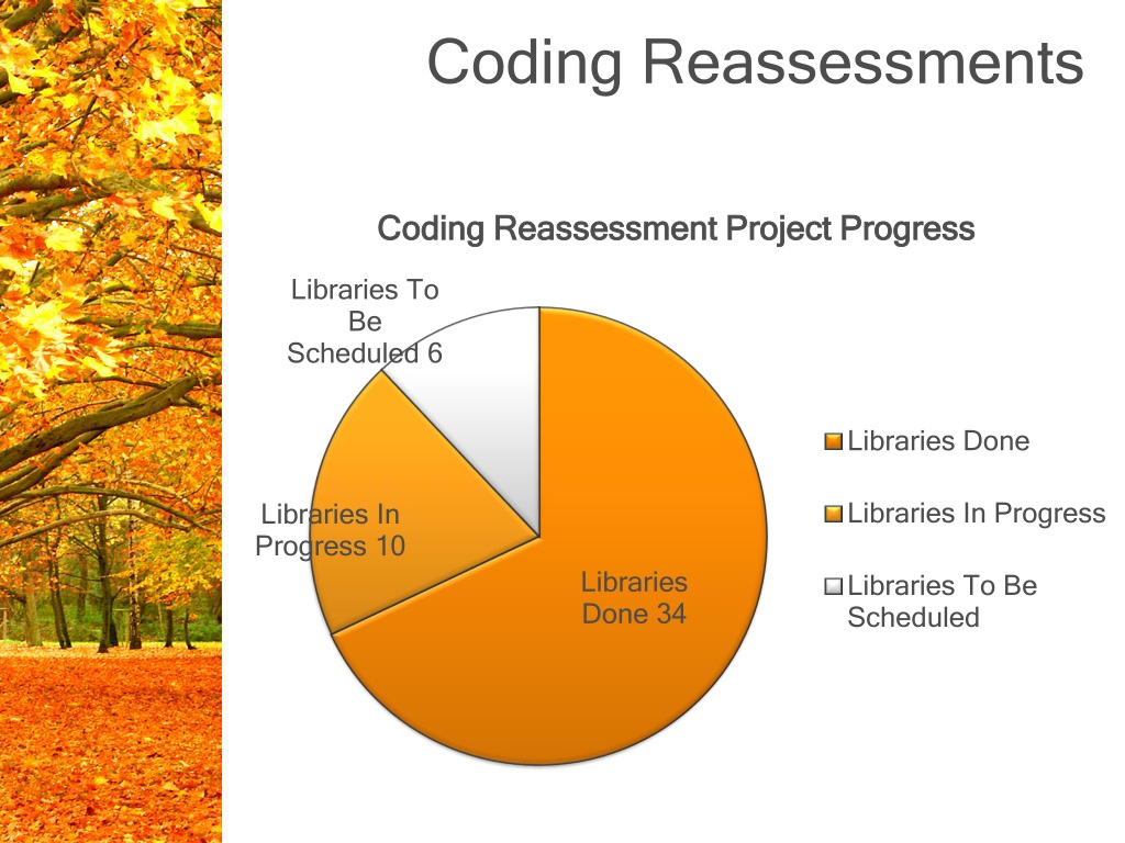 What Recoding Has Accomplished • Coding errors cleaned up • Loan Rule and Loan Rule Determiner Table updates and corrections • Expansion of ICode1 Use for Statistics • Call Number Index Improvements • Separation of Location from Loan Rule Determination • Elimination of Location Codes • Clarification and Unification of Itypes throughout the system • LI LINK will soon be reconfigured to apply loan eligibility more reliably • Material Limits Standardization