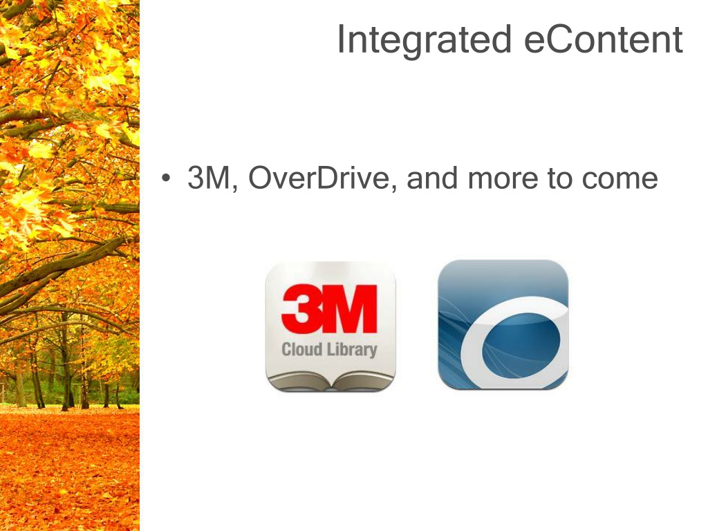 Integrated eContent • 3M, OverDrive, and more to come