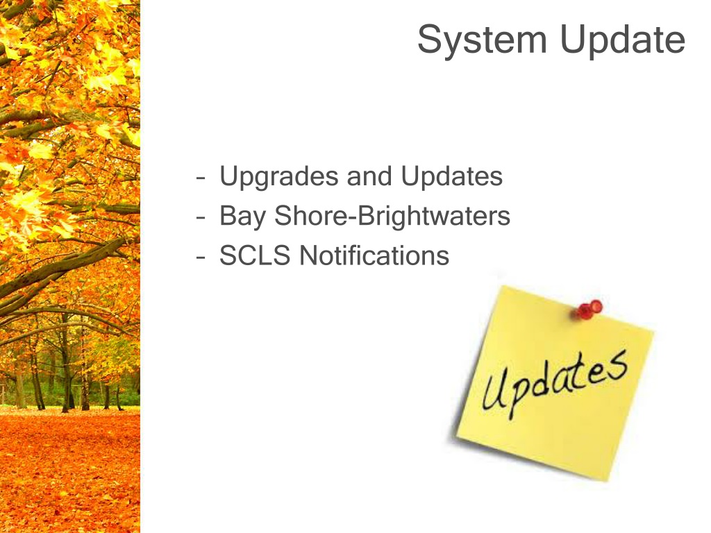 System Update • Upgrades and Updates • Bay Shore-Brightwaters • SCLS Notifications