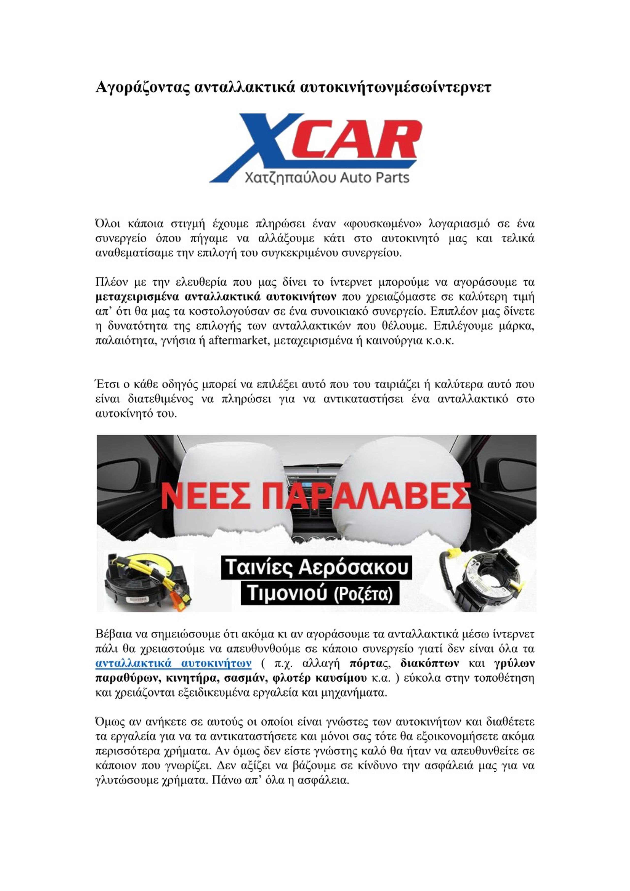 ?? ????? πα?α???? ?? π???? ???π? ?α ?π?????υ?? ??????????? ?α??????α ??α ?α ????υ?? ??? α????? ?α?; ?π?????υ?? ??α ??????????? ?α??????α ??: 1.?????? π??????? Η ?????? π??????? ???α ??? ??????????? ?α??????α ????? ??? ?????? ?α ??????? ?????α αυ?? π?υ ?????? ????? ?α ?????α? ???α ??? π????? ??? π????????. 2.Π??υ??? ??π????α ??? ???? Η π??υ??? ??π????α ??? ???? ??? α??α??α?????? αυ????????? αυ???????? ??π???????? ??υ ??????. 3.Γ?????? & α?φα?? πα?????? Η ??????? ?α? α?φα?? πα?????? ???α? ??α απ? ?α ???α????? ?α?α?????????? ???? ???????????? ?α?α????α???. 4.??????? ?α??? ?????υ???α? ??? α??α??α?????? Η ??????? ?α??? ?????υ???α? ??? α??α??α?????? π???????? ?π?π???? ??π???????? ??? ?????? ??α ?? π????? π?υ α???????. 5.Χα???? ?????? ???αφ?????? Τ? ?α???? ?????? ??? ???αφ?????? ???α? ?? αυ?? ???α????? ?α? π??π?? π???α ?α ????????? ?? ?????? ??υ? ??α ??? π?????? π?υ ?α? ????αφ???? π??? ????υ?? ?π??α??π??? α????. 6.Λ????υ???α ??????? α????? Η ?????υ???α ??????? α????? ????? ?? ?υ?α?????α ??? ?????? ?α ????? ??? α????? ??υ ????? ?α ????? ????? π????????? ????α?. 7.Τ???φ??? &livechat??α ????? ?π????????α Τ? ????φ??? ?α? ?? livechat?π????π?? ??? ?????? ?α ?π????????? ????α, ?????α ?α? ??????α ??α ?α ????? ?π??α??π??? απ???α ??υ ?????υ?????? ?α?? ??? π??????? ??? ??????????? ?α??????α. Τ? ??????????? ?α??????α xcar??α????? ??α ?α πα?απ??? ?α?α?????????? ??? ?π??? ?π?????? ?α ?????? ???α?????????α ? ?α???????α, ?????α ?α? aftermarket α??α??α????? αυ?ο?????ω????? ?α??????? ????? ??? α?????.