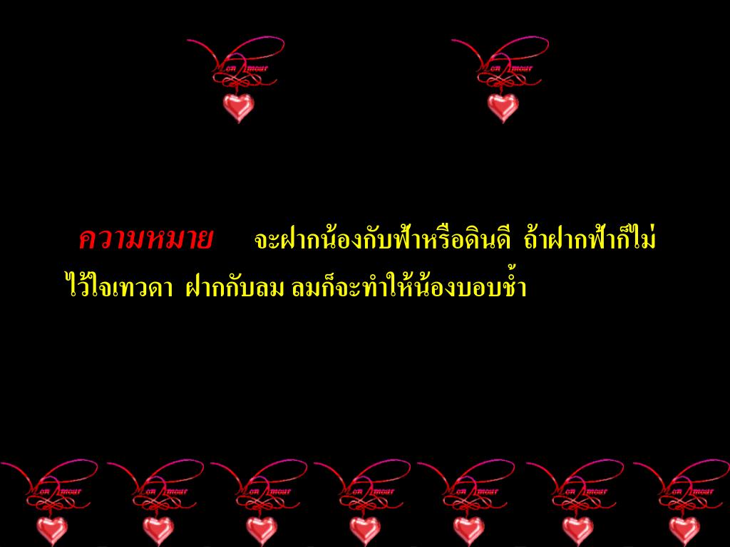 ความหมาย จะฝากน้องกับฟ้าหรือดินดี ถ้าฝากฟ้าก็ไม่ไว้ใจเทวดา ฝากกับลม ลมก็จะทำให้น้องบอบช้ำ