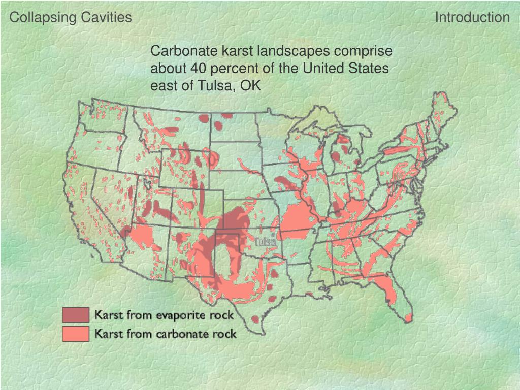 Collapsing Cavities Introduction Carbonate karst landscapes comprise about 40 percent of the United States east of Tulsa, OK