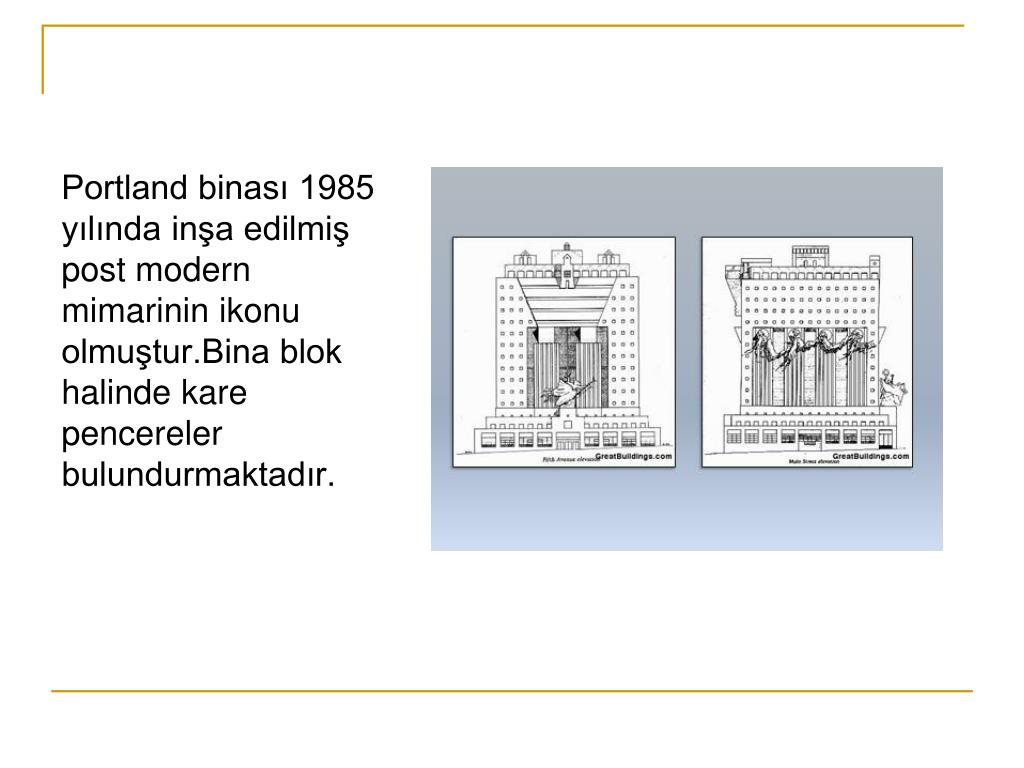 Portland binası 1985 yılında inşa edilmiş post modern mimarinin ikonu olmuştur.Bina blok halinde kare pencereler bulundurmaktadır.