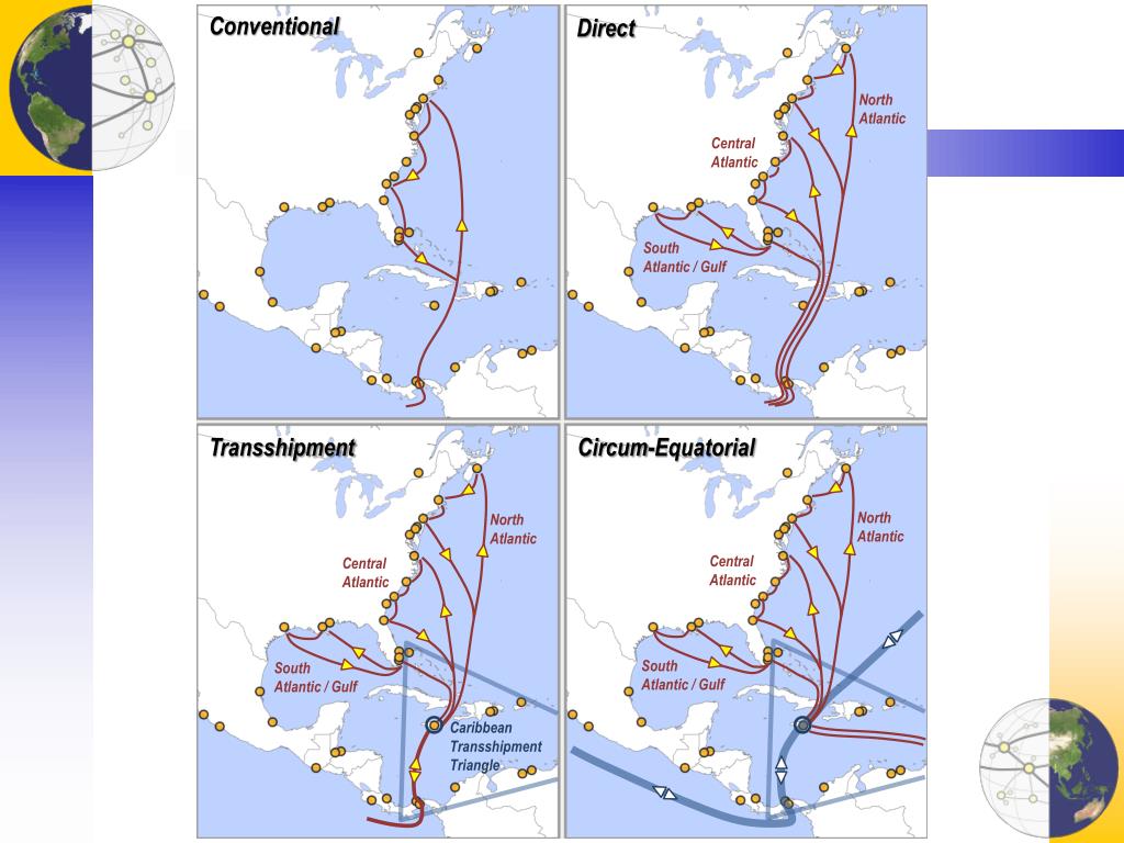 Conventional Direct NorthAtlantic Central Atlantic South Atlantic / Gulf Transshipment Circum-Equatorial NorthAtlantic NorthAtlantic Central Atlantic Central Atlantic South Atlantic / Gulf South Atlantic / Gulf Caribbean Transshipment Triangle
