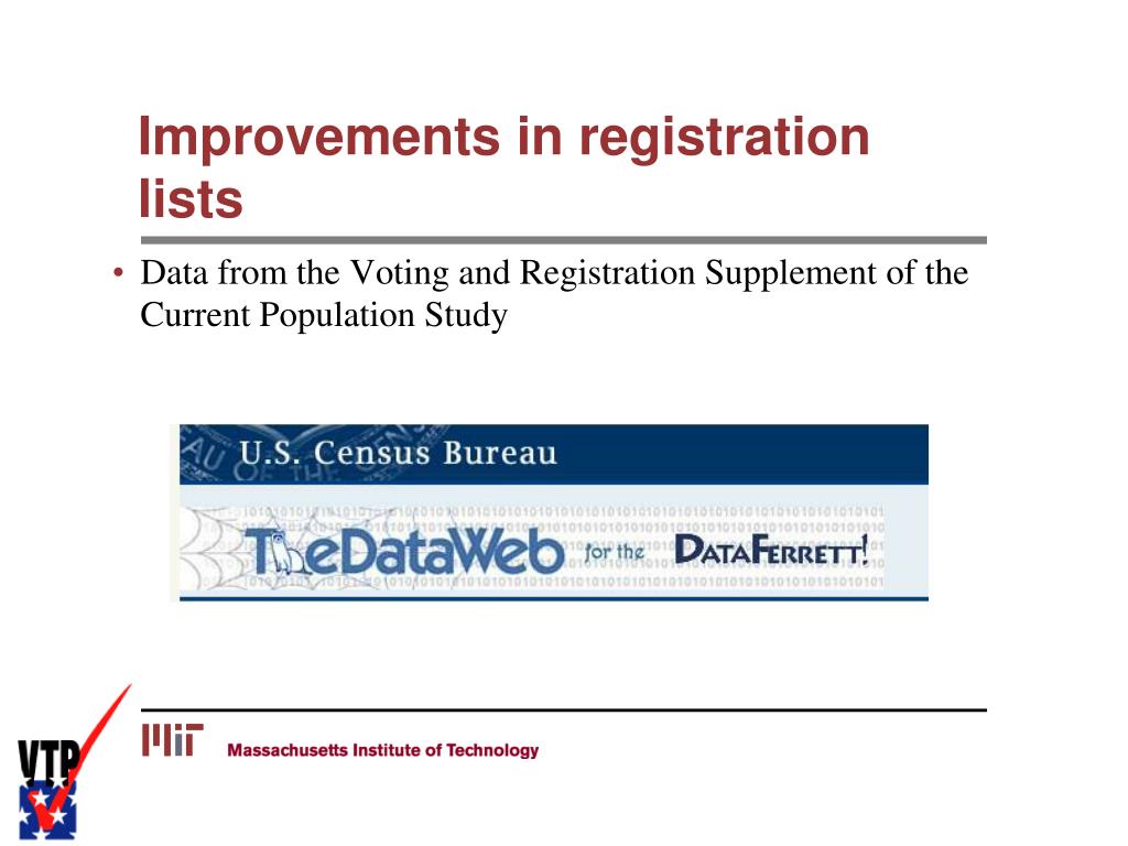 Improvements in registration lists • Data from the Voting and Registration Supplement of the Current Population Study