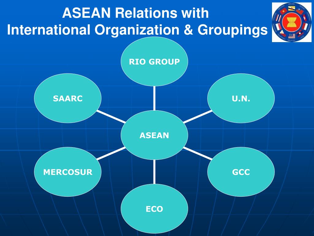 Enhancement of ASEAN Global Role Joint operations/ activities international : Peace keeping combating piracy, etc Coordination in International/ multilateral fora (UN,WTO,IMF,WB,etc) Global Cluster: Increase ASEAN Global Role Research & Study Global Trends &ASEAN response Collaboration between ASEAN and International Organization: UN,FAO,IAEA,etc Enhancement of ASEAN Role in Third countries Support Possible ASEAN Joint Positions in International Issues