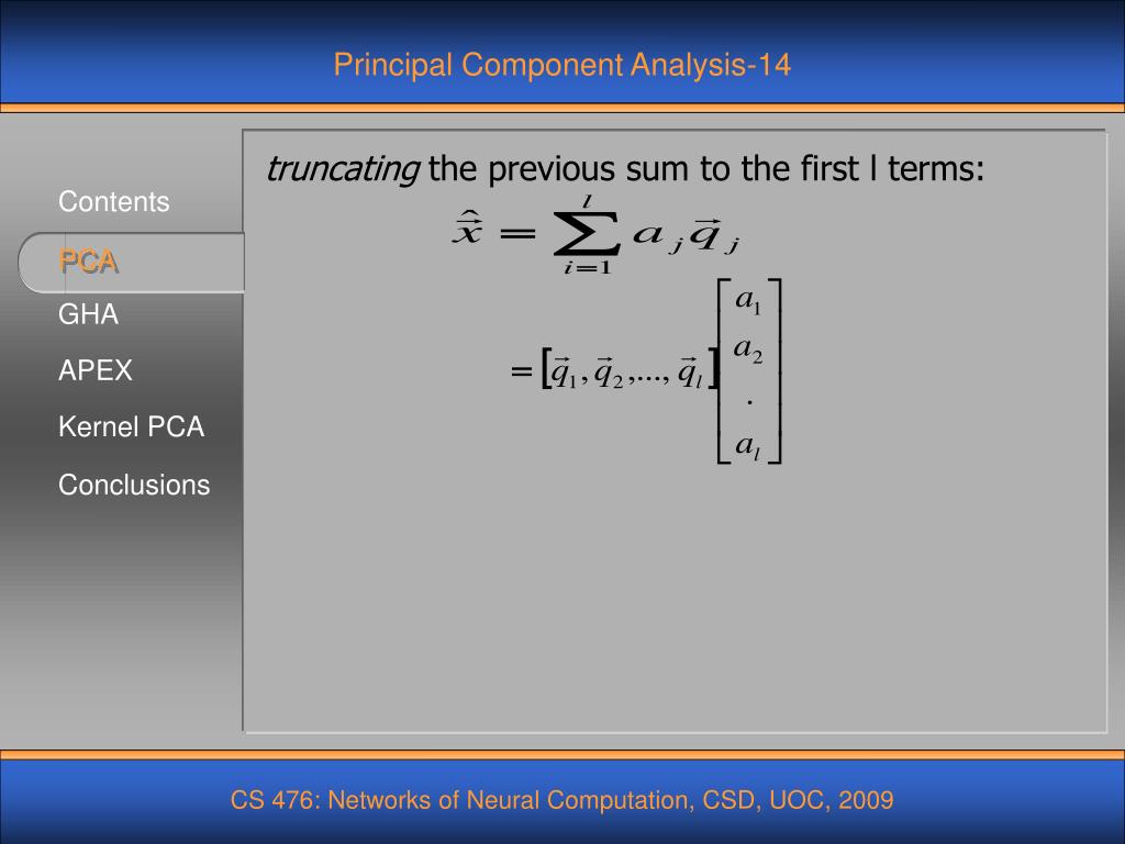 Principal Component Analysis-14 • truncating the previous sum to the first l terms: PCA
