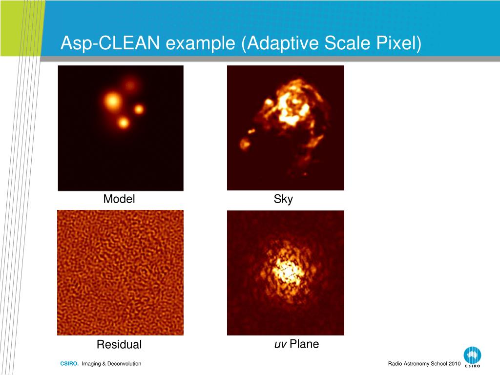 Asp-CLEAN example (Adaptive Scale Pixel) Model Sky uv Plane Residual CSIRO. Imaging & Deconvolution Radio Astronomy School 2010