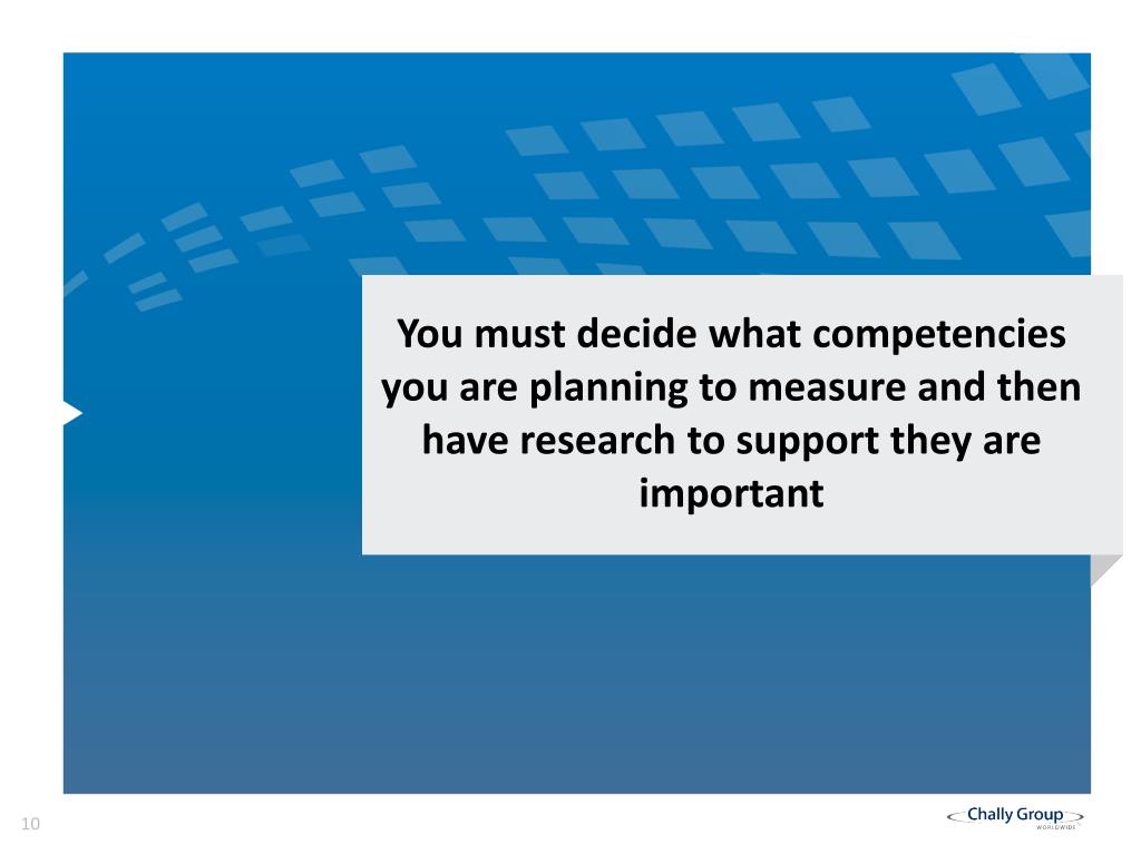 You must decide what competencies you are planning to measure and then have research to support they are important