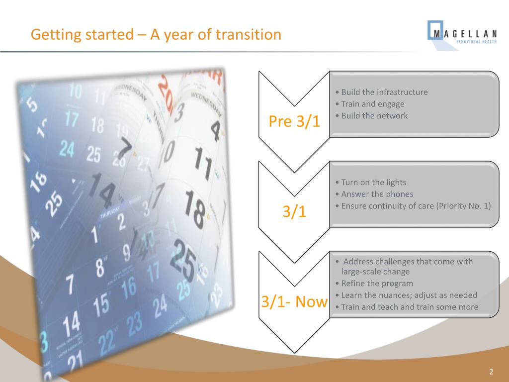 Semi-Annual Behavioral Health Stakeholders Convening. Magellan in Louisiana: Transforming our System 04.17.13. Getting started – A year of transition. Before the Louisiana Behavioral Health Partnership. After the Louisiana Behavioral Health Partnership. Transformation Is Not Easy….