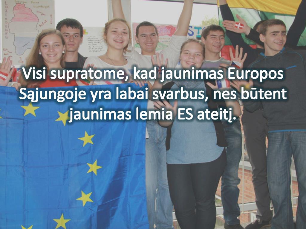 Visi supratome, kad jaunimas Europos Sąjungoje yra labai svarbus, nes būtent jaunimas lemia ES ateitį.