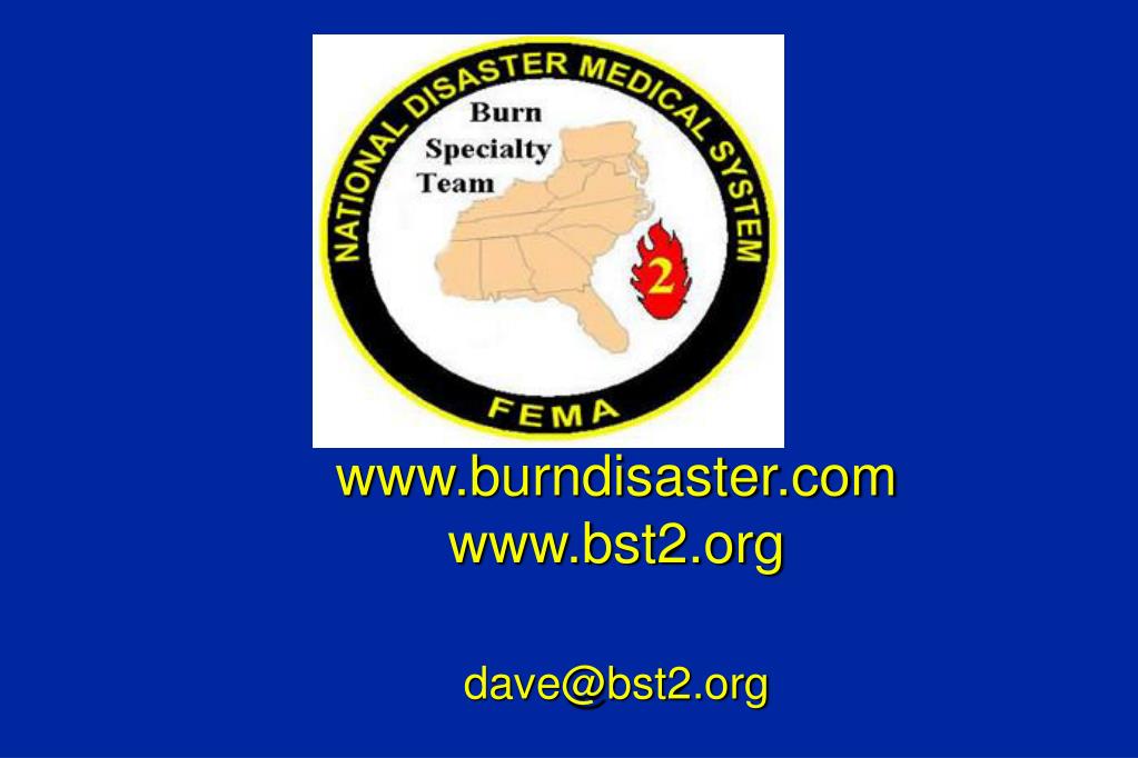 Disclaimers • I have no financial interests in any of this • Views expressed are my own and do not reflect official policy of my various employers, including FEMA, the Dept of Defense or the US Army • Don’t take notes: presentation and references are online at www.burndisaster.com