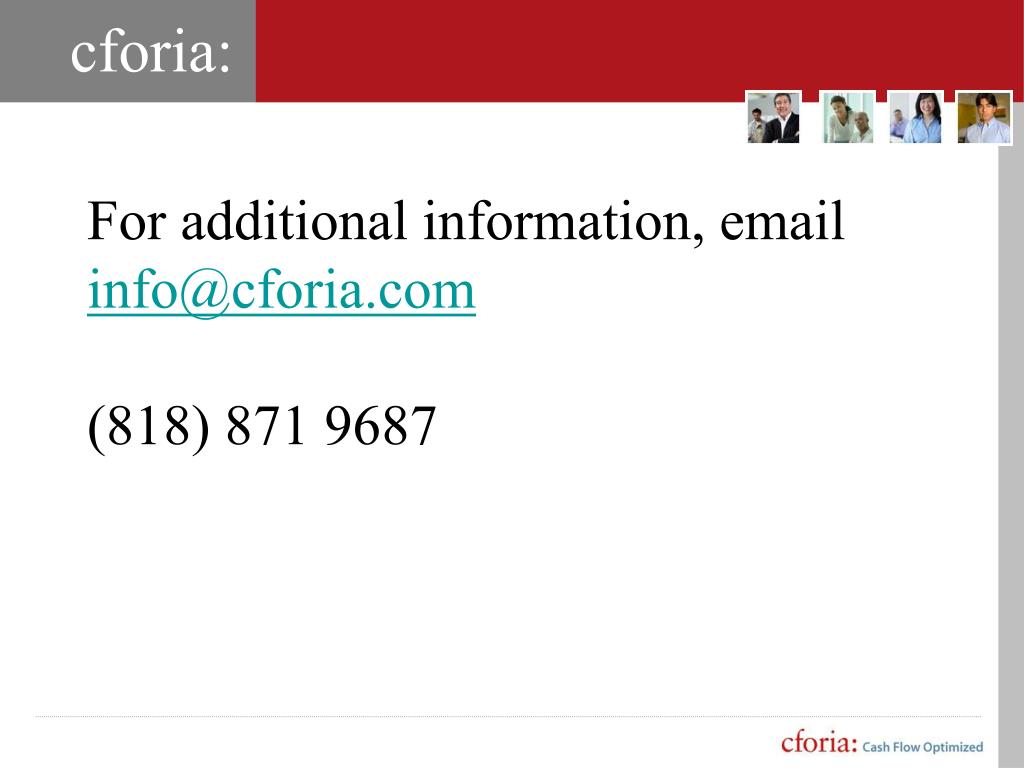 Cforia Software • Cforia is a market leader in AR automation software with 140 accounts world-wide managing over $80 Billion in yearly AR • Dozens of ERP applications supported including SAP, Oracle, JDE, PeopleSoft, etc… • AR automation is designed to: • Reduce bad debt • Decrease DSO • Improve deductions processing • Headcount avoidance or reduction