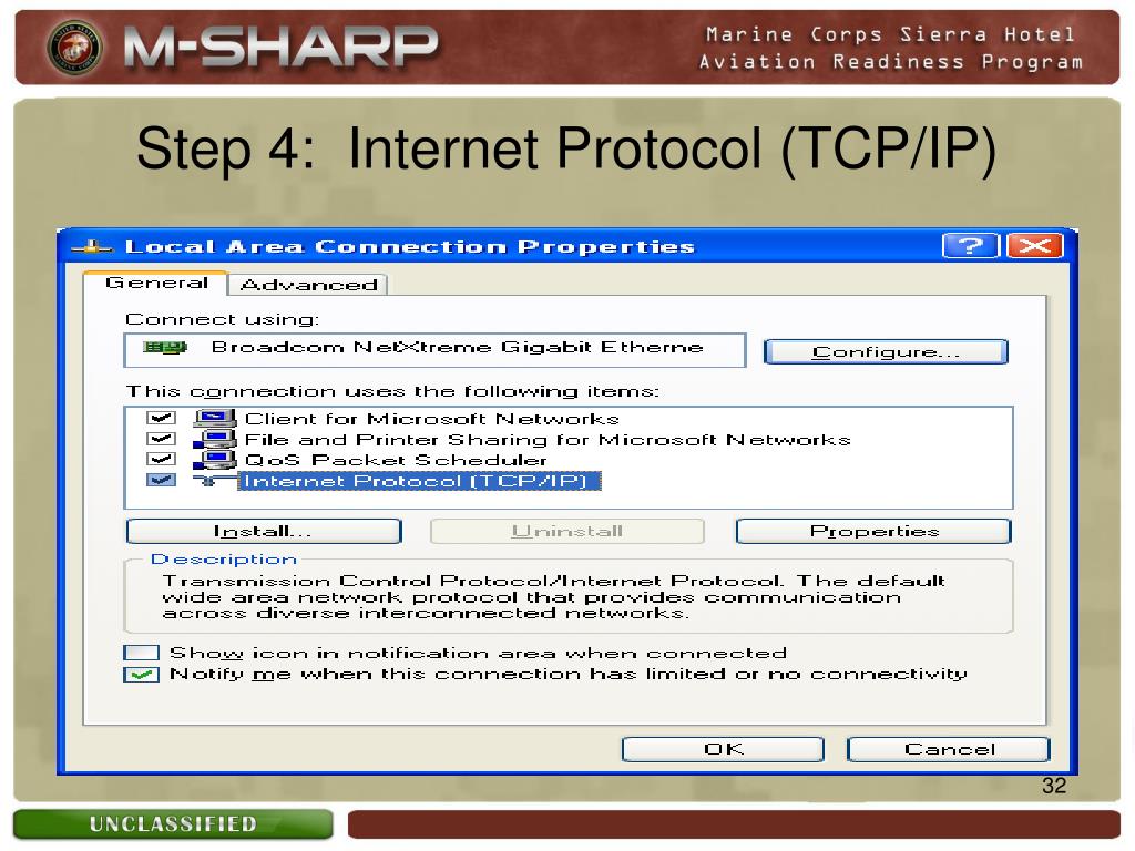 Step 5: Enter MEU Provided IP Address Select this option. Enter IP Address provided by MEU Network Administrator.