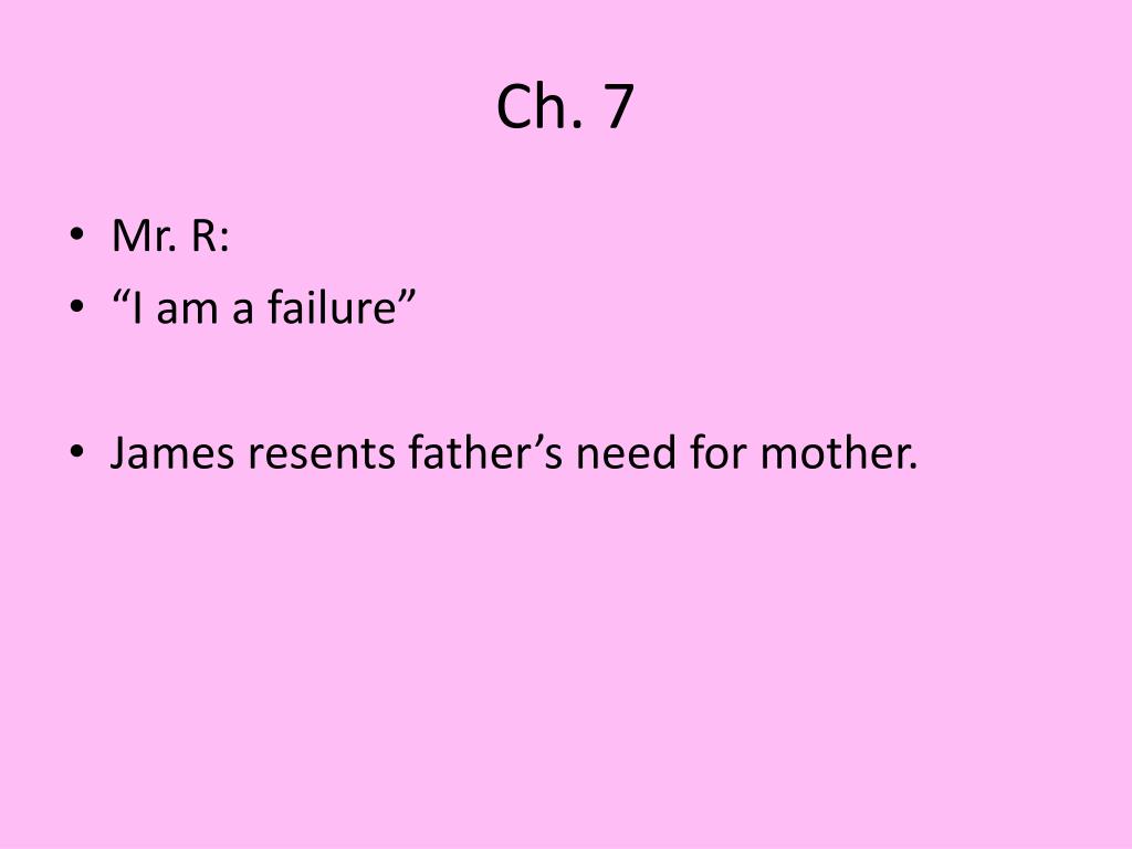 Ch. 7 • Mr. R: • “I am a failure” • James resents father’s need for mother.