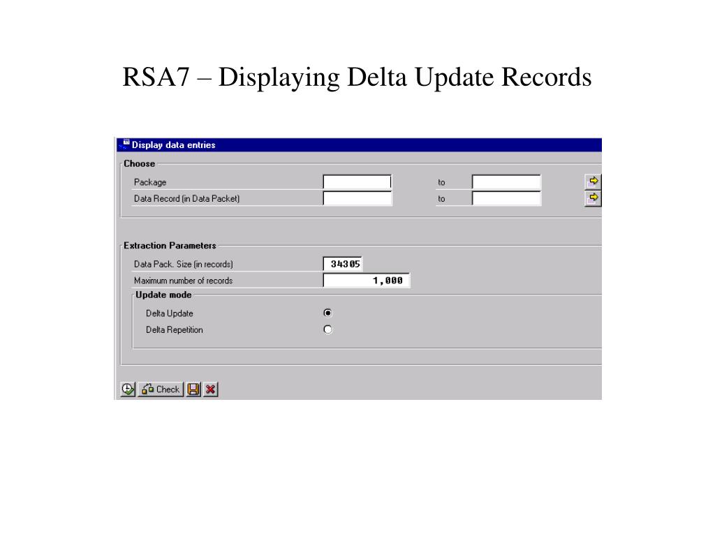 RSA7 – Displaying Delta Update Records Delta Update Record Count