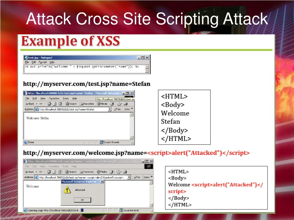 Unauthorized Access Attack • Spoofing • Hopping • DoS • DDoS • Spam Mail • Malicious Code • Cross Site Scripting Attack