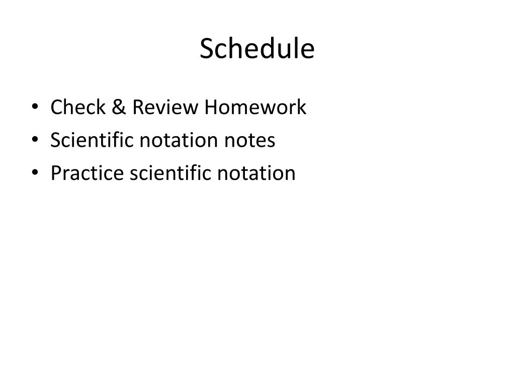Schedule • Check & Review Homework • Scientific notation notes • Practice scientific notation