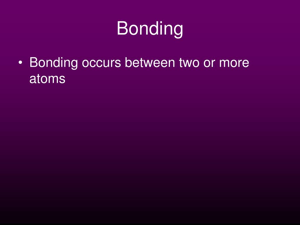 Bonding • Bonding occurs between two or more atoms