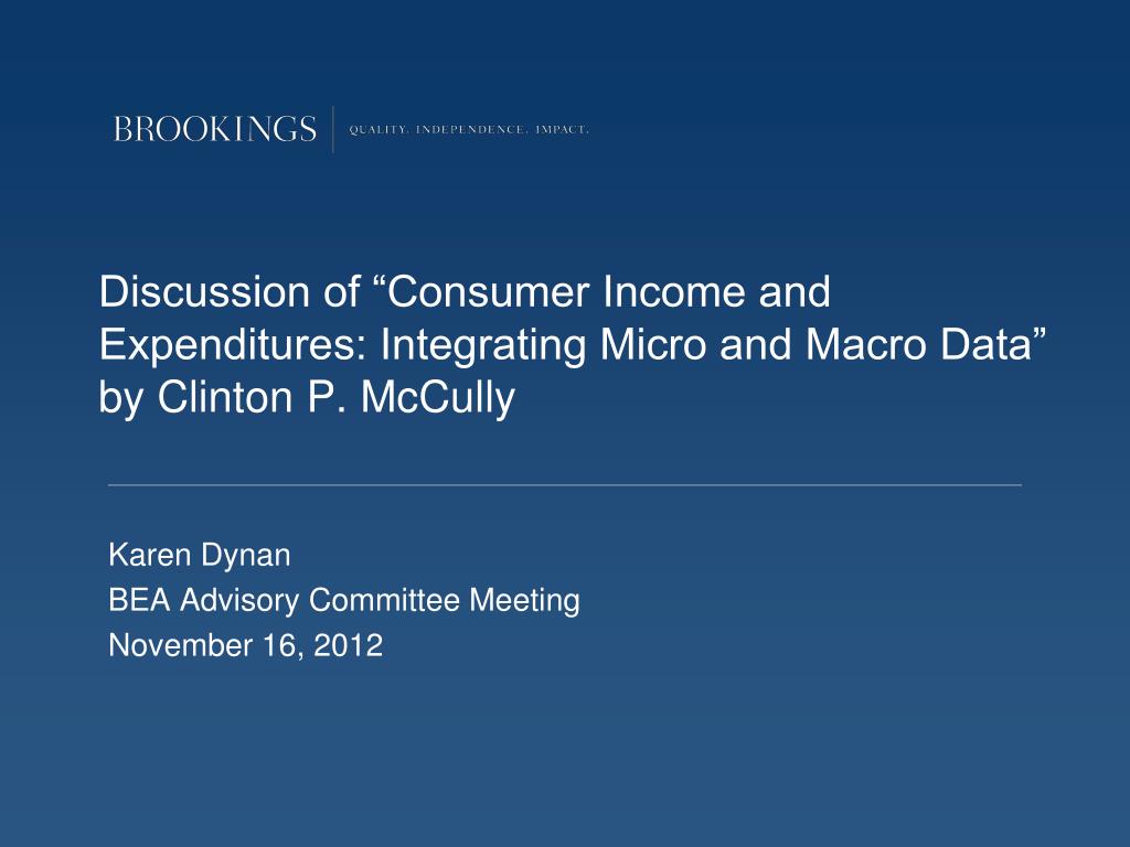 Discussion of “Consumer Income and Expenditures: Integrating Micro and Macro Data” by Clinton P. McCully Karen Dynan BEA Advisory Committee Meeting November 16, 2012