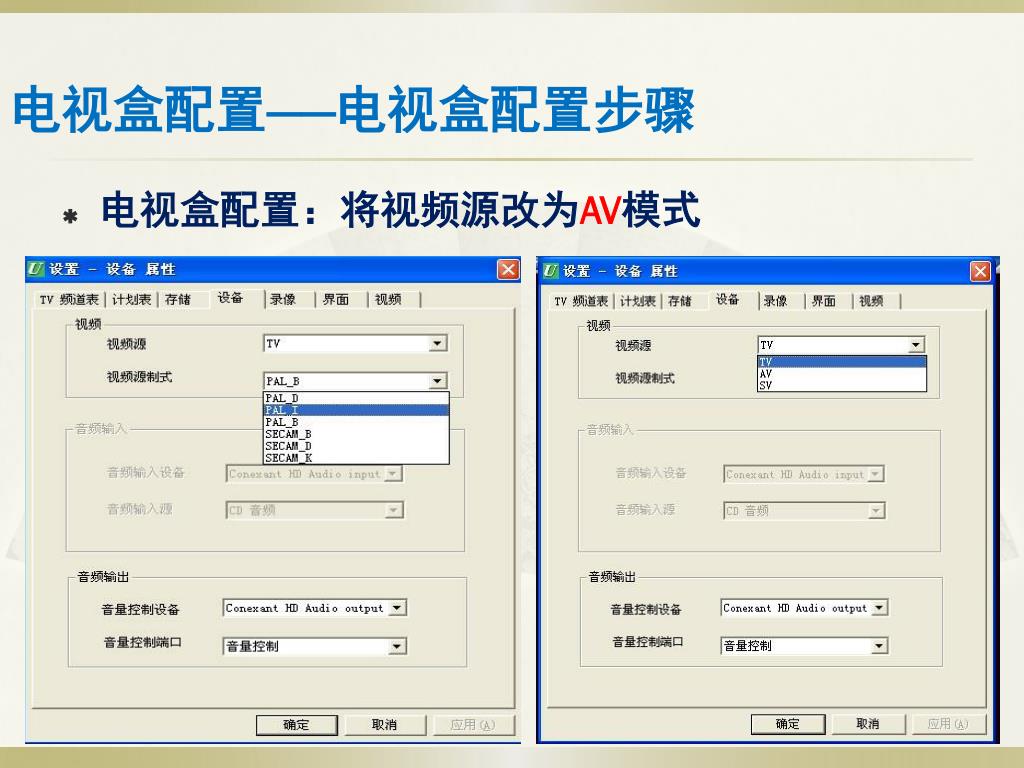 电视盒配置——电视盒配置步骤 电视盒配置:将视频源改为AV模式