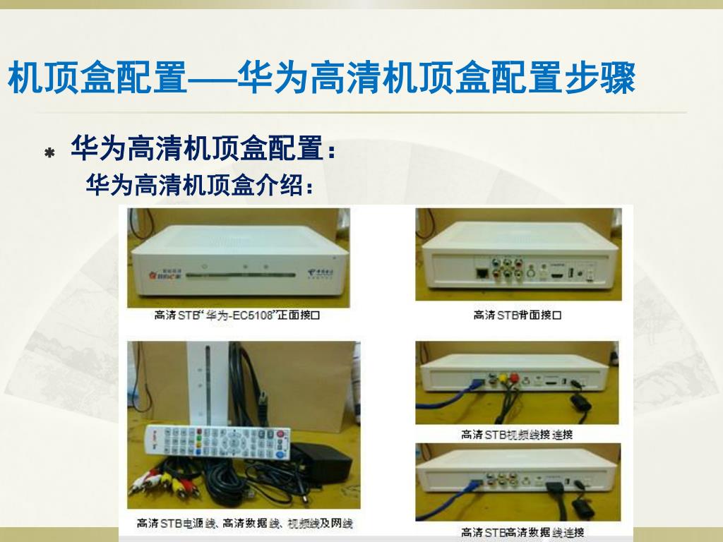 机顶盒配置——华为标清机顶盒配置步骤 • 华为标清机顶盒配置: 华为标清机顶盒介绍: