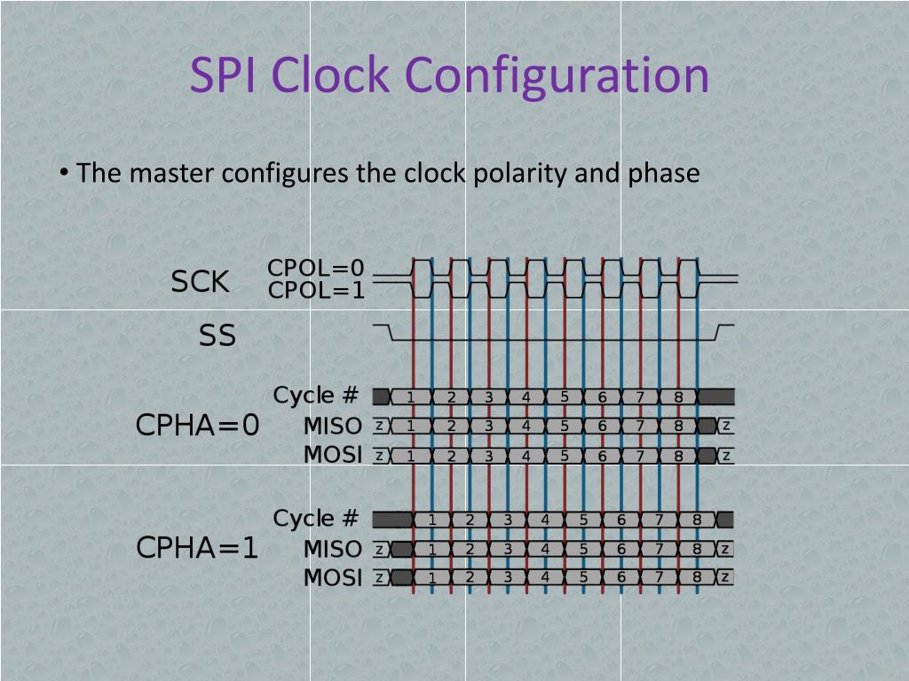 SPI Protocol Description Serial data link standard Operates in full duplex mode Devices communicate in master/slave mode Single master, multiple slaves The master initiates the data frame