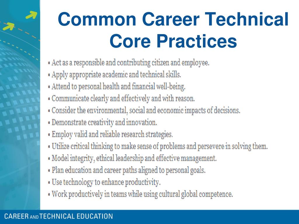 CCTC Next Steps • Review CCTC for alignment with existing courses • NASDCTEc will facilitate a gap analysis • Ask SBE to adopt the CCTC