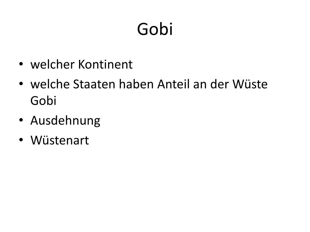Gobi • welcher Kontinent • welche Staaten haben Anteil an der Wüste Gobi • Ausdehnung • Wüstenart