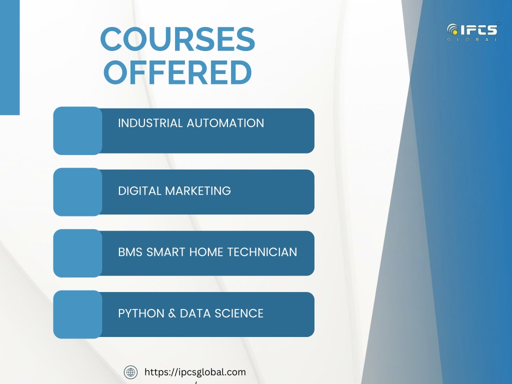 3. COURSES OFFERED INDUSTRIAL AUTOMATION DIGITAL MARKETING BMS SMART HOME TECHNICIAN PYTHON & DATA SCIENCE https://ipcsglobal.com/